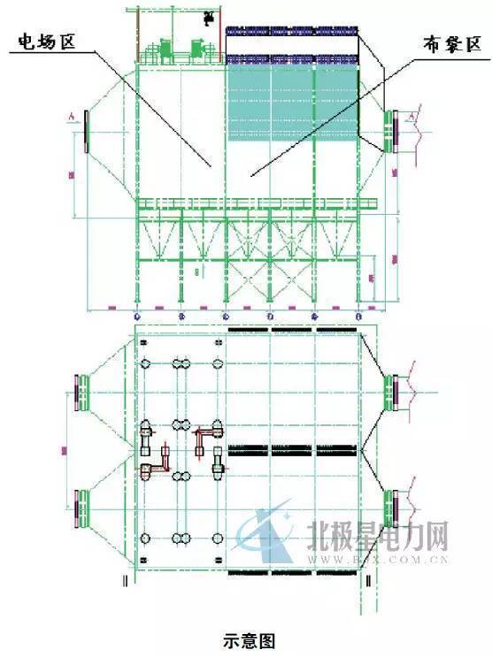4.3.1 改造后電袋復合式除塵器結構(如示意圖)。