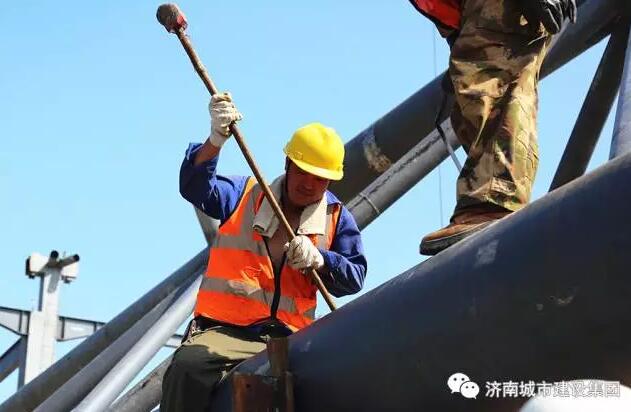 9月8日上午,濟南西部會展中心項目的第一榀(pǐn,屋架量詞)屋面鋼結(jié)構(gòu)桁架吊裝完成,五號展館的鋼結(jié)構(gòu)主體雛形初現(xiàn),濟南西部會展中心的建設(shè)步伐又推進了扎實一步。