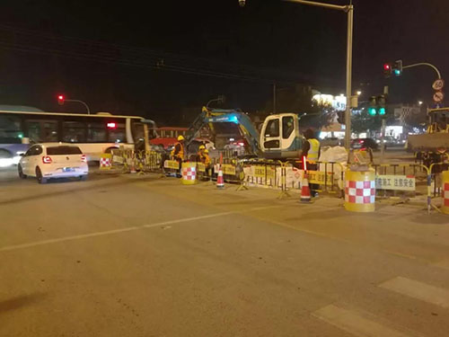 各管線橫穿濟(jì)微路的施工過程中,考慮到濟(jì)微路為南北交通主干道,本著“少封一米是一米”的施工理念,從減少交通影響,保證車輛和行人通行角度出發(fā),不但將施工全部安排在夜間10點(diǎn)之后,而且經(jīng)過反復(fù)優(yōu)化施工分區(qū),將原計(jì)劃半幅封閉縮小到逐車道封閉的方式進(jìn)行,早6點(diǎn)高峰來臨前恢復(fù)交通。