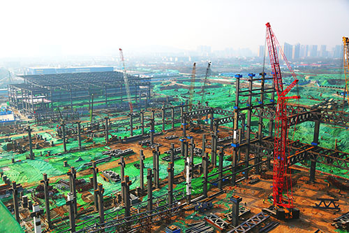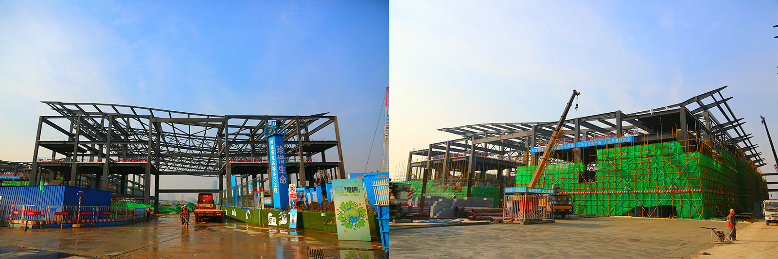 一號至三號展館鋼結(jié)構(gòu)吊裝進(jìn)行中