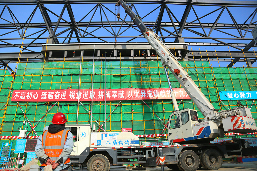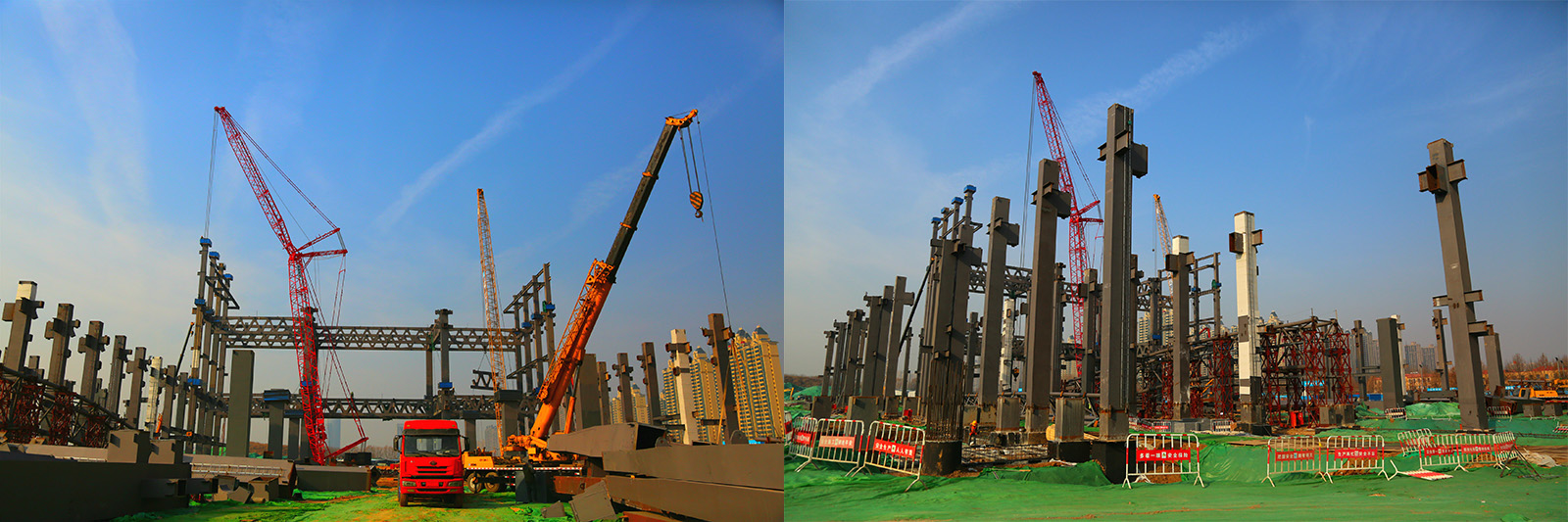 濟南西部會展中心展覽中心樁基工程完工,鋼結(jié)構(gòu)已吊裝1.5萬噸