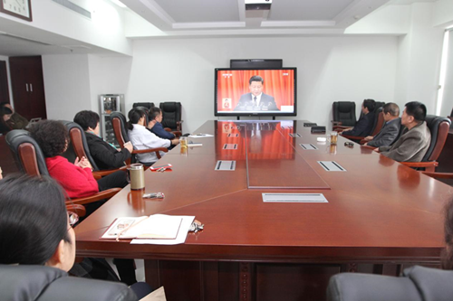 黨的十九大在京勝利閉幕,認(rèn)真學(xué)習(xí)宣傳貫徹好黨的十九大精神,是當(dāng)前和今后一個時期的頭等大事。實(shí)業(yè)中心等三個中心人員一起實(shí)時觀看學(xué)習(xí)黨的十九大直播。