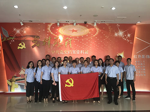 在參觀中,全體人員懷著崇敬的心情,通過大量詳盡的的黨史檔案資料和講解員的生動解說,了解了我黨從新民主主義革命時期、社會主義革命和建設(shè)時期、改革開放到社會主義現(xiàn)代化建設(shè)時期走過的路程和取得的成就,追隨前輩奮斗的足跡,緬懷革命先烈的豐功偉績,使全體黨員強化黨性修養(yǎng),凝聚信仰力量,思想得到了升華。參觀結(jié)束后,在公司第一黨支部書記、公司副總經(jīng)理史德茂的帶領(lǐng)下,全體黨員面對鮮艷的黨旗,莊嚴舉起右手,重溫入黨誓詞。