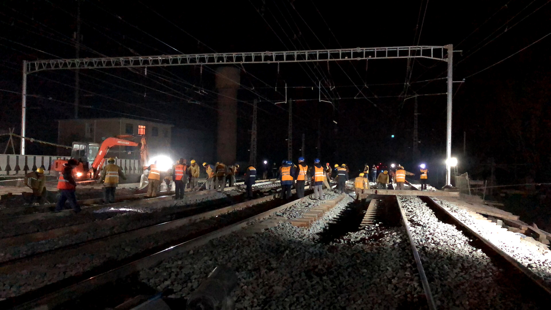 在下穿膠濟鐵路工程施工中,項目部與施工單位克服了地方管線遷改量大、站場改造多專業(yè)交叉作業(yè)、橋涵頂進技術(shù)復(fù)雜、營業(yè)線安全風(fēng)險高、時間緊任務(wù)重等困難,累計鐵路要點257次,先后完成拆除道岔10組,新鋪道岔6組,抽換鋼枕544根,架拆便梁44孔次等任務(wù),高標準的完成了站場改造、橋涵精準頂進等各項施工,為打通鳳凰路南北貫通瓶頸打下了堅實基礎(chǔ)。