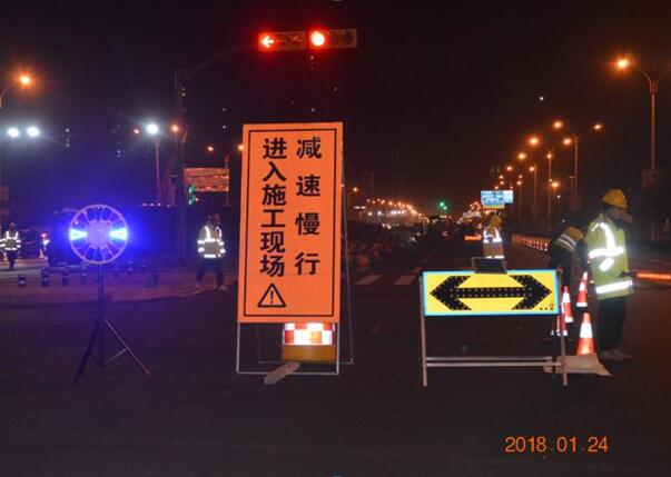 當(dāng)時(shí)氣溫在零下10℃左右,施工人員、材料、機(jī)械全部準(zhǔn)備完畢,現(xiàn)場(chǎng)參與施工人員達(dá)200余人、各類(lèi)設(shè)備20余臺(tái)。截止到次日凌晨4點(diǎn),東營(yíng)路至淄博路段施工區(qū)域已按照業(yè)主要求封閉完成并正式開(kāi)始施工。