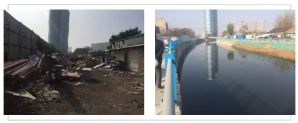 迎濟橋以南河道東側(cè)(臧家村西側(cè))施工前與施工后
