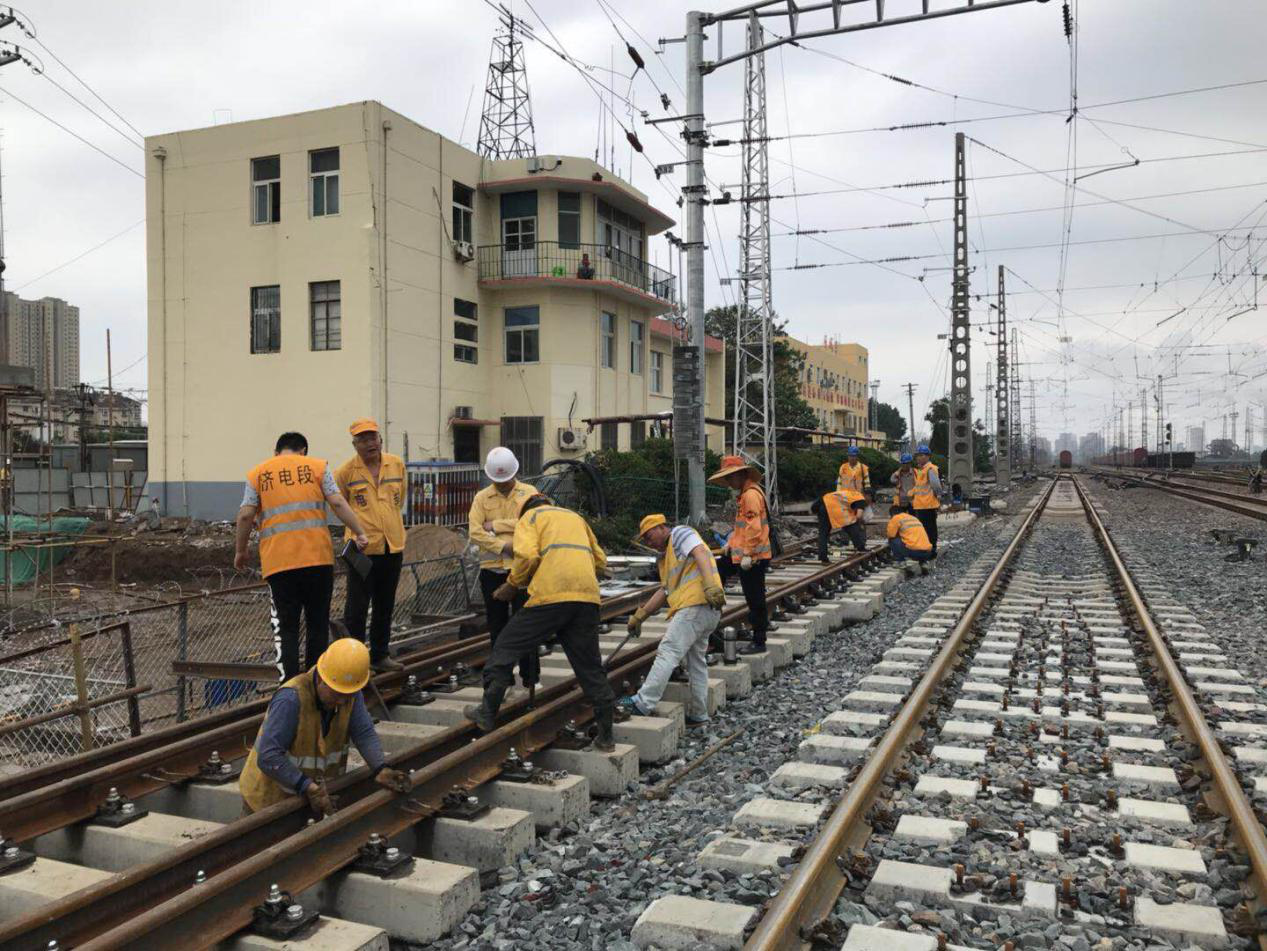 為保證歷城站中咽喉站場改造順利按期完成,確保膠濟(jì)鐵路6月1日恢復(fù)120km/h常速運行,項目部全體職工以飽滿的精神面貌開拓創(chuàng)新,攻堅克難,積極備戰(zhàn),確保要點施工順利展開。一是統(tǒng)籌安排、超前謀劃,提前為下道工序施工做好人力、物力和機(jī)械設(shè)備的準(zhǔn)備,確保工程環(huán)環(huán)相扣、連續(xù)展開。二是充分發(fā)揮主觀能動性,通過精心組織,以創(chuàng)新的姿態(tài)、提前謀劃,采取了利用濟(jì)南鐵路局5月份工務(wù)集中修大天窗的時間拉入道岔和提前封鎖側(cè)線縱移軌排方式進(jìn)行施工。此次方案優(yōu)化不僅保證了工程順利實施,還減少了因施工對鐵路運輸造成的影響,得到了濟(jì)南鐵路局涉鐵工程辦公室在路局全線施工計劃會上的通報表揚。三是積極細(xì)化要點施工方案,優(yōu)化資源配置,強化現(xiàn)場協(xié)調(diào)配合,利用天窗點外時間預(yù)鋪道岔,主動聯(lián)系濟(jì)南工務(wù)段、濟(jì)南電務(wù)段等設(shè)備管理單位做好點前驗收工作,不放過任何一個細(xì)節(jié),為道岔的順利拉入打下堅實基礎(chǔ)。