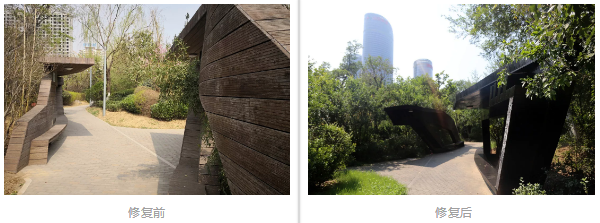 本次工程主要包括高速?gòu)V場(chǎng)及三館廣場(chǎng)重竹地板維修、木棧道路修復(fù)、局部河道清淤三項(xiàng)主要內(nèi)容,其余還有修補(bǔ)滲水方磚地面、廣場(chǎng)金屬欄桿刷漆、廣場(chǎng)區(qū)域休息座凳整修、廣場(chǎng)區(qū)域木質(zhì)墻面固定刷漆、跨河石橋欄板地面局部飾面板缺失等零星工程,均為在原貌基礎(chǔ)上進(jìn)行修復(fù)。工程完工后,集團(tuán)下一步將委托專門的維護(hù)單位對(duì)臘山河進(jìn)行常規(guī)維護(hù),讓臘山河水常清、岸常綠。