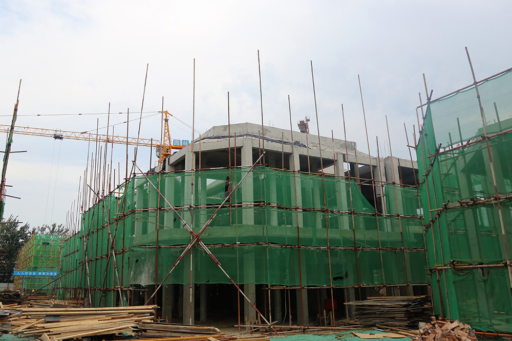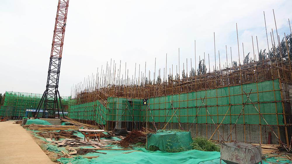 項目所有建筑中,最具標志性的當屬城門樓,同時,這也是項目內(nèi)工程量最大、工期最長的單體建筑。據(jù)現(xiàn)場負責人介紹,僅城門樓施工使用的鋼管就已達20萬米,占整個項目鋼管消耗量的近一半,從基礎(chǔ)施工到主體完工,需要耗時近4個月。