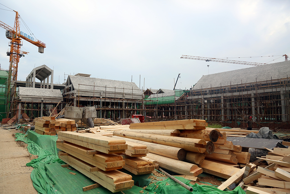 為消防安全考慮,項目建筑的屋頂及大部分構(gòu)件都摒棄了木質(zhì)結(jié)構(gòu),統(tǒng)一采用鋼筋混凝土結(jié)構(gòu)。雖然采用了現(xiàn)代材料,但是施工復雜程度卻比原始工藝大的多。“屋頂?shù)臉?gòu)件要用專門定制的模板逐層澆筑,較長的房梁還要逐段拼接,同時又要保證細節(jié)到位,做起來就比較耗時”,現(xiàn)場負責人介紹道。在項目入口處,有一棟小型建筑為全木制結(jié)構(gòu),據(jù)介紹,這棟建筑僅用三天就建造完成,而如果采用鋼筋混凝土結(jié)構(gòu),至少需要20天工期。