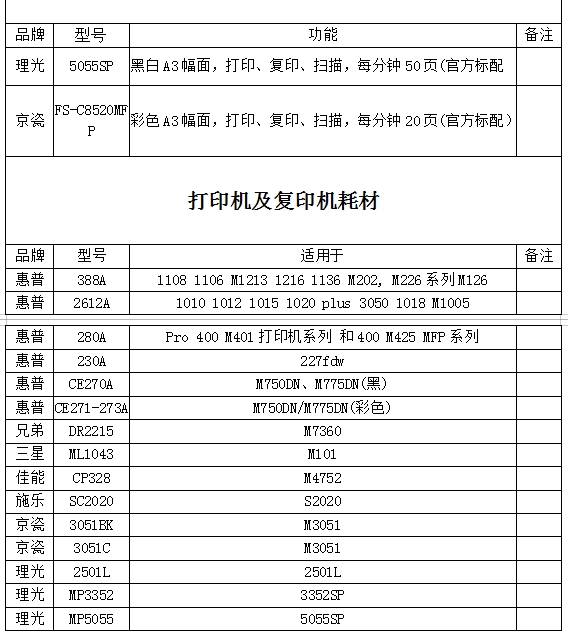 現(xiàn)對集團(tuán)打印機(jī)、耗材及周邊設(shè)備采購選取供應(yīng)商進(jìn)行詢價(jià),有關(guān)事項(xiàng)通知如下,歡迎各單位參加報(bào)價(jià)。