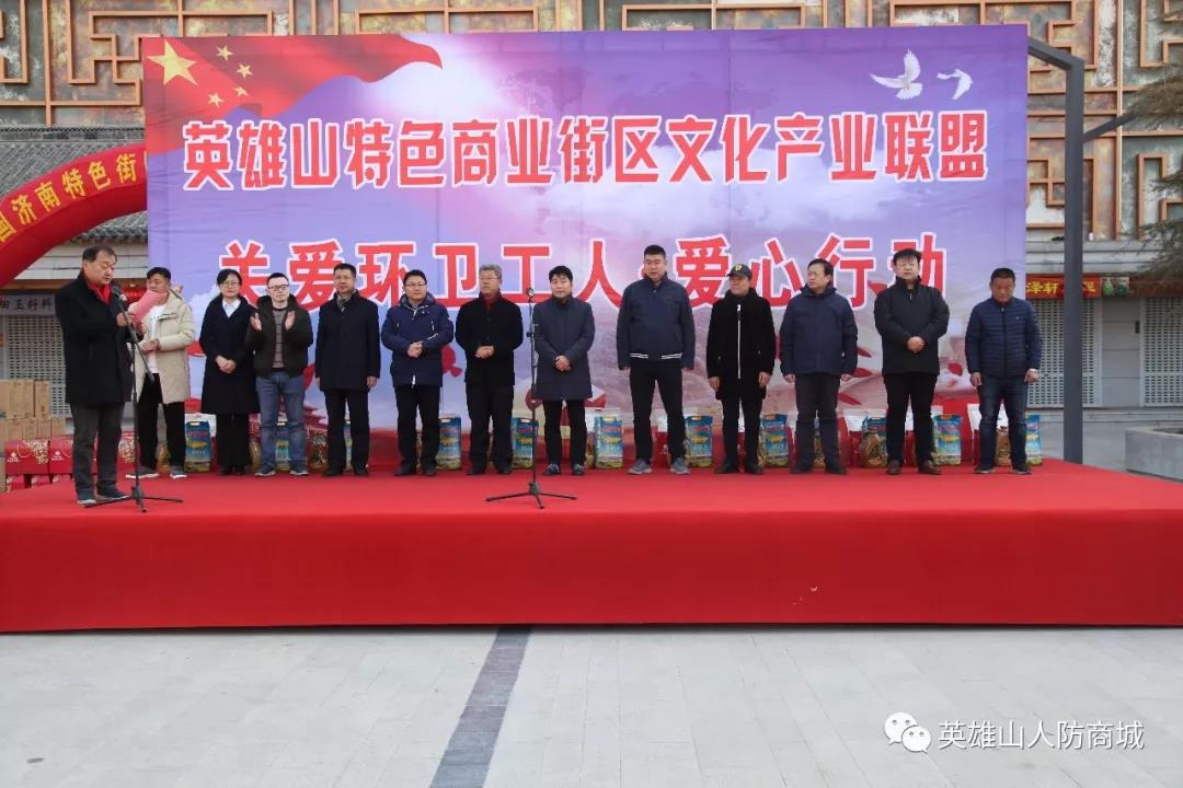 2019年2月1日,農(nóng)歷臘月二十七,濟南市英雄山人防工程管理有限責(zé)任公司作為英雄山特色商業(yè)街區(qū)文化產(chǎn)業(yè)聯(lián)盟成員單位,與多家聯(lián)盟單位聯(lián)合發(fā)起了中國濟南特色街區(qū)聯(lián)盟“關(guān)愛環(huán)衛(wèi)工人,愛心行動”主題公益活動,為服務(wù)于街區(qū)的環(huán)衛(wèi)工人們獻上節(jié)日的祝福,并送上了個人捐款與農(nóng)副產(chǎn)品。市中區(qū)副區(qū)長潘建軍、四里村街道辦事主任崔珉受邀參加了本次活動。