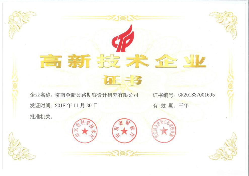 2019年3月14日,金衢公司喜獲由山東省科學(xué)技術(shù)廳、山東省財政廳、山東省國家稅務(wù)局和山東省地方稅務(wù)局聯(lián)合頒發(fā)的高新技術(shù)企業(yè)證書,這標(biāo)志著金衢公司正式邁入國家級高新技術(shù)企業(yè)行列。
