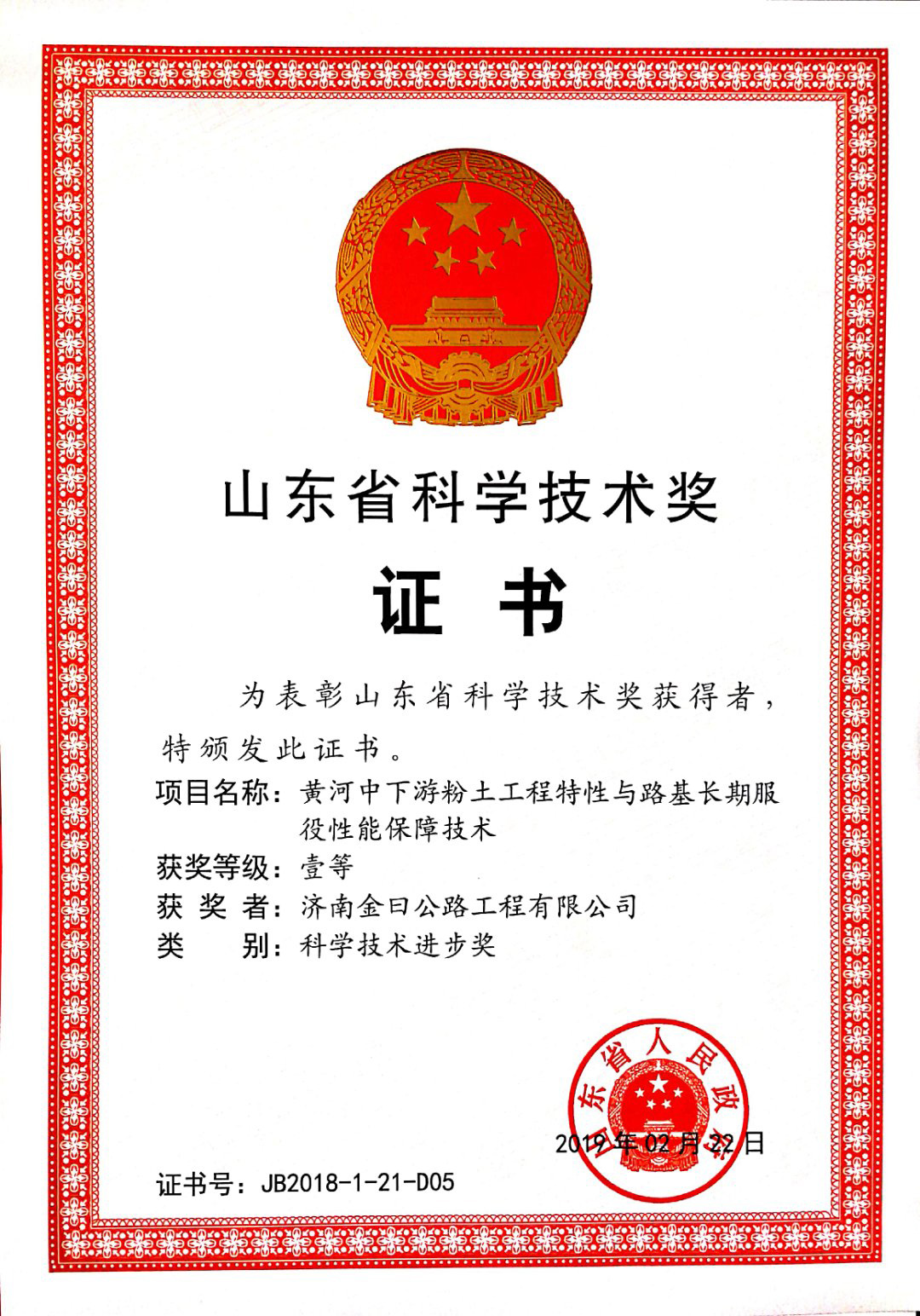 4月4日,山東省科學(xué)技術(shù)獎(jiǎng)勵(lì)大會(huì)在山東大廈隆重舉行。濟(jì)南城市建設(shè)集團(tuán)所屬濟(jì)南金曰公路工程有限公司參與研發(fā)的《黃河中下游粉土工程特性與路基長期服役性能保障技術(shù)》科研成果,榮獲2018年山東省科技進(jìn)步一等獎(jiǎng)。