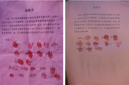 “我鄭重提出申請,志愿加入濟南城市建設(shè)集團第六批下沉社區(qū)志愿服務(wù)隊,投身疫情防控一線,為打贏疫情防控阻擊戰(zhàn)作出應(yīng)有的貢獻!”