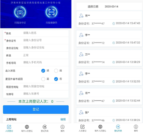 為切實保障濟陽區(qū)濟陽、濟北11個社區(qū)居民的生命安全和身體健康,上崗前,每名志愿者都在手機上安裝了“濟南易通行”APP,利用高科技軟件對社區(qū)居民每天的進出狀況做好登記,既方便又快捷。