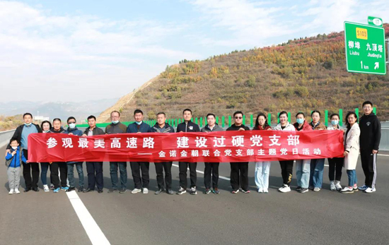 10月25日,金諾金朝聯(lián)合黨支部開展“參觀最美高速路·建設(shè)過(guò)硬黨支部”主題黨日活動(dòng)。聯(lián)合黨支部黨員、預(yù)備黨員、發(fā)展對(duì)象、積極分子等18名人員參加了此次活動(dòng)。