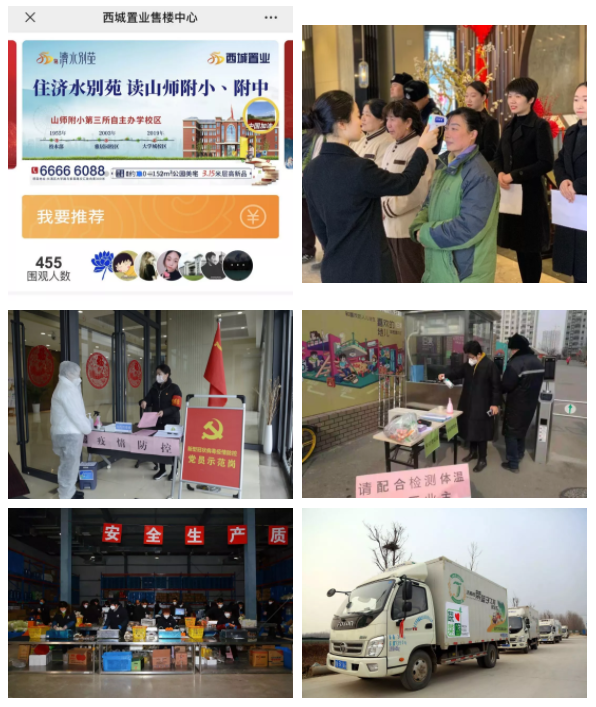 在集團(tuán)黨委的引領(lǐng)下,各級(jí)黨組織、所屬企業(yè)積極響應(yīng),主動(dòng)作為,各企業(yè)主要負(fù)責(zé)同志認(rèn)真履行第一責(zé)任人職責(zé),對(duì)疫情防控工作親自安排部署、親自組織推動(dòng)、親自跟蹤問(wèn)效,充分發(fā)揮自身優(yōu)勢(shì),組織調(diào)配資源和力量,全力做好疫情防控服務(wù)保障,以實(shí)際行動(dòng)踐行使命和責(zé)任擔(dān)當(dāng)。集團(tuán)楊柳春風(fēng)、西城·濟(jì)水上苑等地產(chǎn)項(xiàng)目暫停營(yíng)銷接待工作,堅(jiān)持每天開(kāi)展全面、持續(xù)消毒,加強(qiáng)園區(qū)、寫字樓的聯(lián)防聯(lián)控,啟動(dòng)線上VR看房通道,足不出戶在家安心看房,讓客戶享受便捷、周到的服務(wù)。西城資產(chǎn)公司在西城大廈一層南門設(shè)置“消毒回廊”,公司防控小組每天到西客站東場(chǎng)綜合體、西城大廈、東廣場(chǎng)地下停車場(chǎng)、東廣場(chǎng)地下餐廳及長(zhǎng)清西部創(chuàng)新園項(xiàng)目、大學(xué)城 9 號(hào)樓、長(zhǎng)清安置三區(qū)等 7 個(gè)項(xiàng)目督導(dǎo)檢查疫情防控工作情況,確保區(qū)域防控措施落實(shí)到位。濟(jì)西農(nóng)場(chǎng)公司全員上崗,加班加點(diǎn),將線上與線下銷售平臺(tái)相結(jié)合,每天向市內(nèi)配送平價(jià)新鮮蔬菜,為疫情期間全市蔬菜市場(chǎng)供應(yīng)和穩(wěn)定做出了積極貢獻(xiàn)。