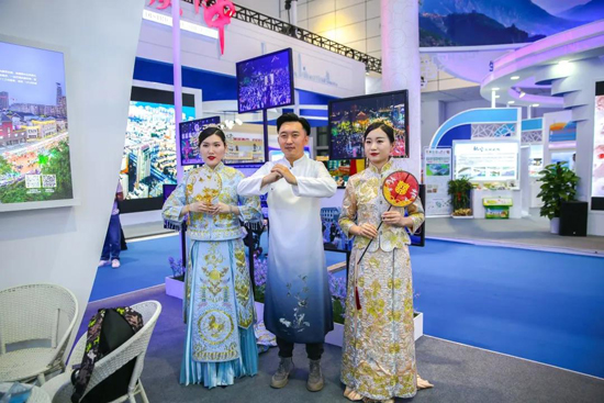 在槐蔭區(qū)展位旁的小舞臺(tái)前,來(lái)自江湖藝社的多名演出者身著長(zhǎng)袍,上演了幾出精彩的快板戲,圍觀人越聚越多,不時(shí)有人鼓掌喝彩。此后羅芙威宮宴會(huì)酒店帶來(lái)的中西式婚禮演藝“穿石鑿空只為我愛(ài),漂洋過(guò)海恰好你在”浪漫氣息十足,引來(lái)眾多觀眾圍觀拍照。