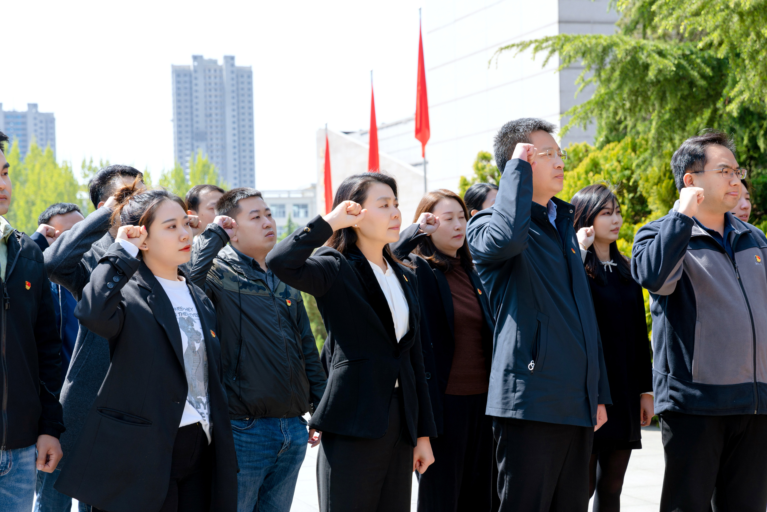 在革命烈士紀(jì)念碑旁,全體黨員面對(duì)黨旗莊嚴(yán)宣誓,重溫入黨誓詞,時(shí)刻提醒自己所肩負(fù)的神圣使命和責(zé)任,始終牢記黨員身份、對(duì)黨忠誠(chéng)。