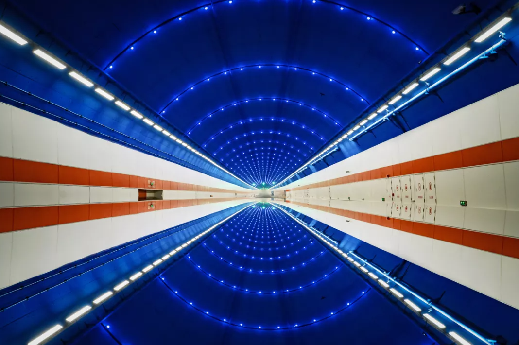 濟(jì)南黃河濟(jì)濼路隧道設(shè)計方案以黃河文化根脈為基,黃河之“光”為“場”,融合黃河歷史、文化、自然、藝術(shù)等表現(xiàn)黃河兩岸是我家。“黃河根脈歲歲安瀾”主題設(shè)計定位為城河相融,動靜相融,蘊(yùn)含“天人合一”的設(shè)計理念,讓黃河隧道藝術(shù)空間景觀和自然互為補(bǔ)充。設(shè)計中借黃河水紋傳統(tǒng)紋樣,將黃河文化與自然生態(tài)中的場地、色彩、光影結(jié)合,再造了黃河地形與黃河流動的自然之美,描繪了新時代黃河畫卷中詩情畫意的城市底蘊(yùn)。