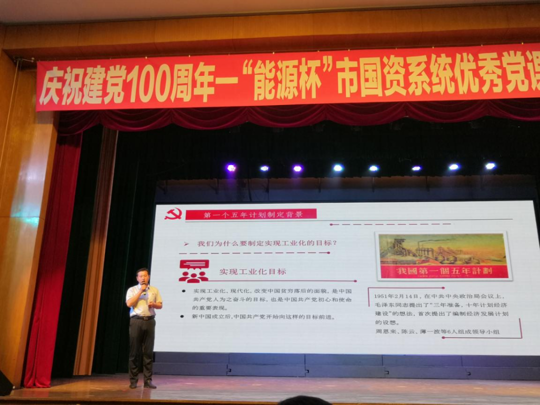 為慶祝中國共產(chǎn)黨成立100周年,扎實推進黨史學(xué)習(xí)教育,6月2日,由濟南市國資委主辦、濟南能源集團承辦的“能源杯”市國資系統(tǒng)優(yōu)秀黨課匯報展示觀摩會在北郊熱電廠禮堂舉行。集團選送黨課《第一個五年計劃》,參加現(xiàn)場觀摩評比并榮獲三等獎。