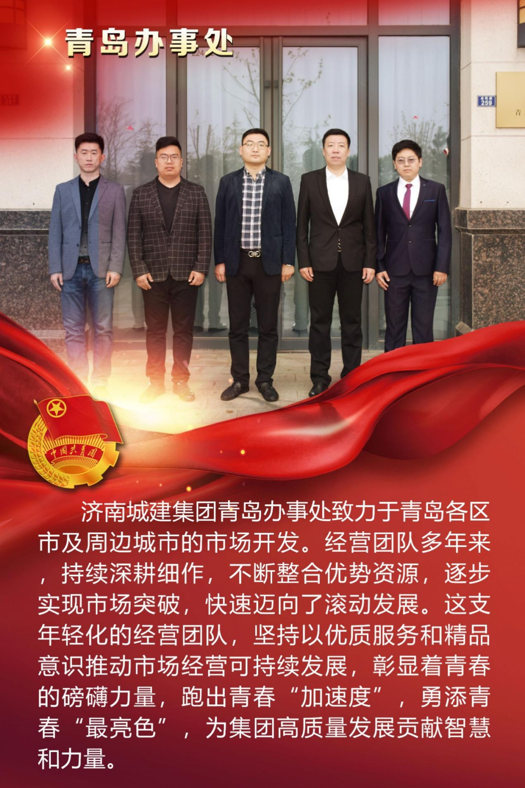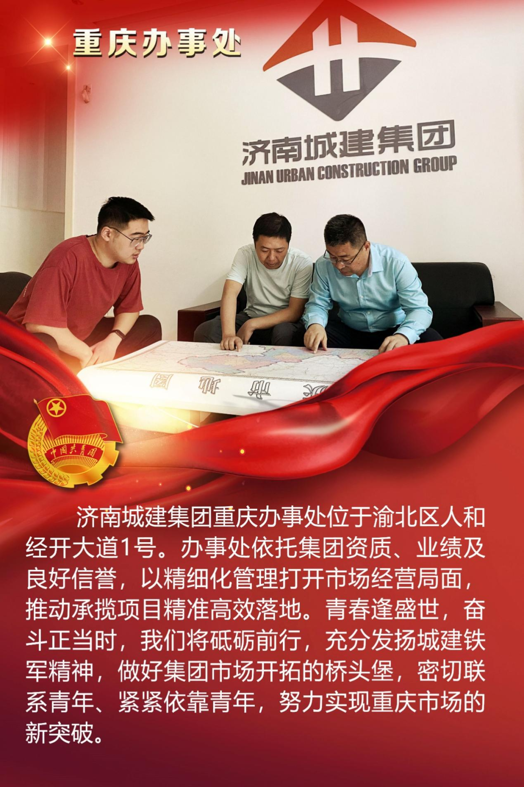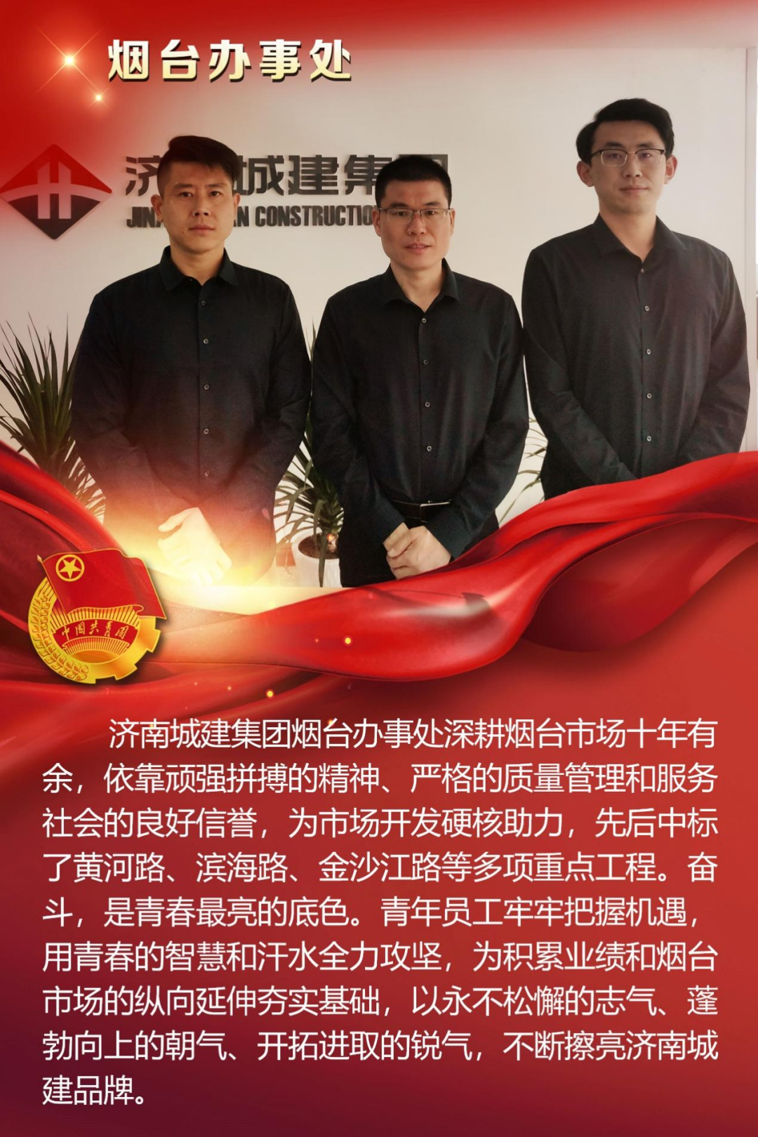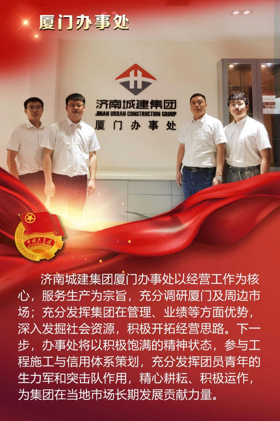 為慶祝中國(guó)共產(chǎn)主義青年團(tuán)成立100周年,深情回顧共青團(tuán)發(fā)展歷程,進(jìn)一步增強(qiáng)廣大團(tuán)員青年敬團(tuán)、愛(ài)團(tuán)意識(shí),提升團(tuán)組織的凝聚力和向心力,展示公司團(tuán)員青年積極向上、奮發(fā)有為的精神風(fēng)貌,集團(tuán)第四團(tuán)委——濟(jì)南城建集團(tuán)有限公司團(tuán)委組織開(kāi)展團(tuán)旗在城建飄揚(yáng)合影活動(dòng)。