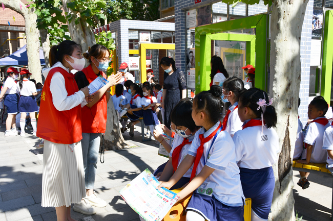 手牽手,心連心,一起成長(zhǎng)。本次志愿者活動(dòng)與全國(guó)安全月密切結(jié)合,提前印制“喜迎二十大 爭(zhēng)做好隊(duì)員”、“新型冠狀病毒預(yù)防指南”、“中小學(xué)生安全教育宣傳”等知識(shí)手冊(cè),在現(xiàn)場(chǎng)進(jìn)行發(fā)放,向小朋友們普及相關(guān)知識(shí)。