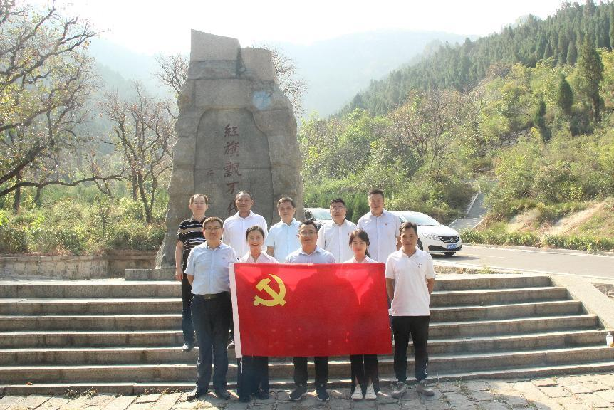 全體黨員干部共同前往云臺山和尚洞,參觀中共萊蕪縣委建立舊址,并在“紅旗飄萬代”紀念碑前合影留念。