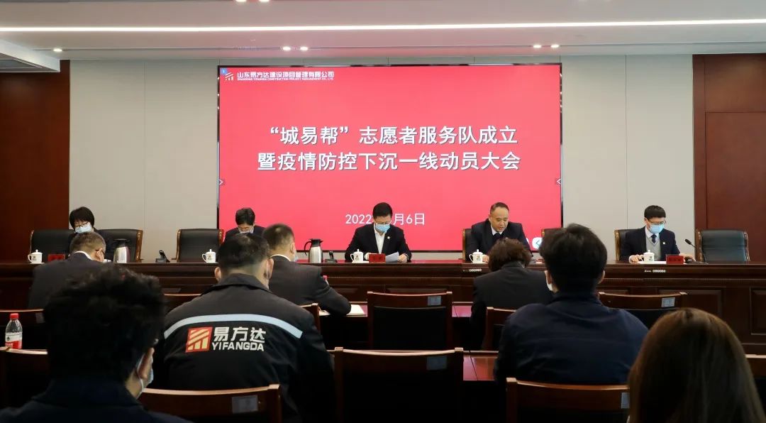 會(huì)議宣讀了公司工會(huì)關(guān)于《山東易方達(dá)建設(shè)項(xiàng)目管理有限公司關(guān)于成立“城易幫”志愿者服務(wù)隊(duì)的決定》,公司黨委書(shū)記、董事長(zhǎng)牛勇向“城易幫”志愿者服務(wù)隊(duì)進(jìn)行授旗。
