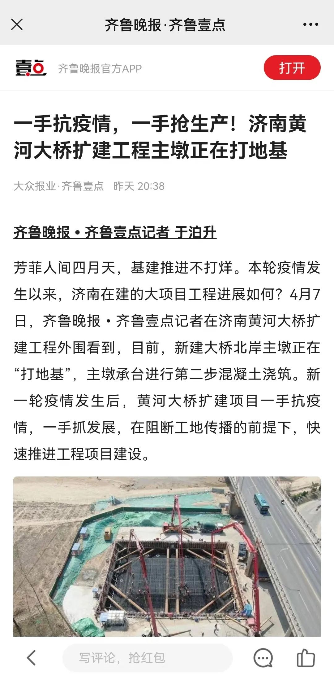 一手抗疫情,一手搶生產(chǎn)!濟(jì)南黃河大橋擴(kuò)建工程主墩正在打地基