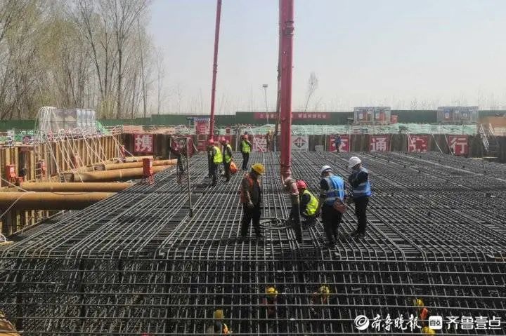 芳菲人間四月天,基建推進(jìn)不打烊。本輪疫情發(fā)生以來(lái),濟(jì)南在建的大項(xiàng)目工程進(jìn)展如何?4月7日,齊魯晚報(bào)•齊魯壹點(diǎn)記者在濟(jì)南黃河大橋擴(kuò)建工程外圍看到,目前,新建大橋北岸主墩正在“打地基”,主墩承臺(tái)進(jìn)行第二步混凝土澆筑。新一輪疫情發(fā)生后,黃河大橋擴(kuò)建項(xiàng)目一手抗疫情,一手抓發(fā)展,在阻斷工地傳播的前提下,快速推進(jìn)工程項(xiàng)目建設(shè)。