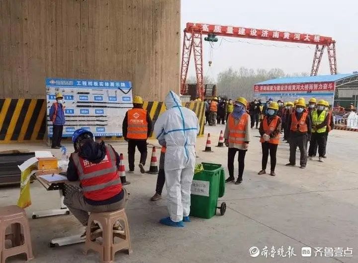 從場(chǎng)區(qū)外圍可以看到,濟(jì)南黃河大橋擴(kuò)建項(xiàng)目部有著一套完備的現(xiàn)場(chǎng)疫情防控體系。出入口有工作人員值守,對(duì)進(jìn)場(chǎng)人員進(jìn)行詳細(xì)詢問(wèn)、登記。