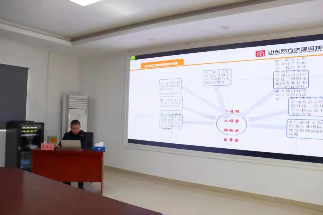 易方達(dá)建設(shè)項(xiàng)目管理有限公司項(xiàng)目經(jīng)理、黃河大橋項(xiàng)目地面道路標(biāo)段的總監(jiān)理工程師、高級(jí)工程師溫建偉以《全過(guò)程工程咨詢管理經(jīng)驗(yàn)淺談》為題,詳細(xì)介紹了全過(guò)程咨詢提出背景及政治文件解讀、管理模式、業(yè)務(wù)難點(diǎn)及建議、工作方法等內(nèi)容。