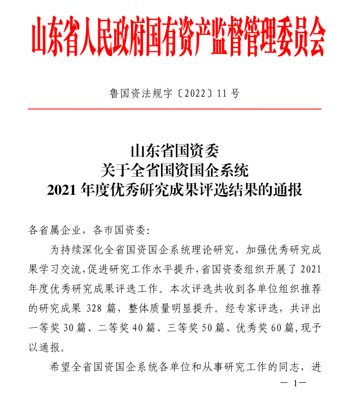 近日,山東省國(guó)資委發(fā)布了《山東省國(guó)資委關(guān)于全省國(guó)資國(guó)企系統(tǒng)2021年度優(yōu)秀研究成果評(píng)選結(jié)果的通報(bào)》(魯國(guó)資法規(guī)字〔2022〕11號(hào))文件,濟(jì)南城市建設(shè)集團(tuán)總工辦牽頭,集團(tuán)所屬山東金宇信息集團(tuán)有限公司研究的《智慧交通異構(gòu)大數(shù)據(jù)可視化決策輔助預(yù)警系統(tǒng)平臺(tái)研發(fā)與應(yīng)用》成果榮獲“全省國(guó)資國(guó)企系統(tǒng)2021年度優(yōu)秀研究成果”一等獎(jiǎng)。