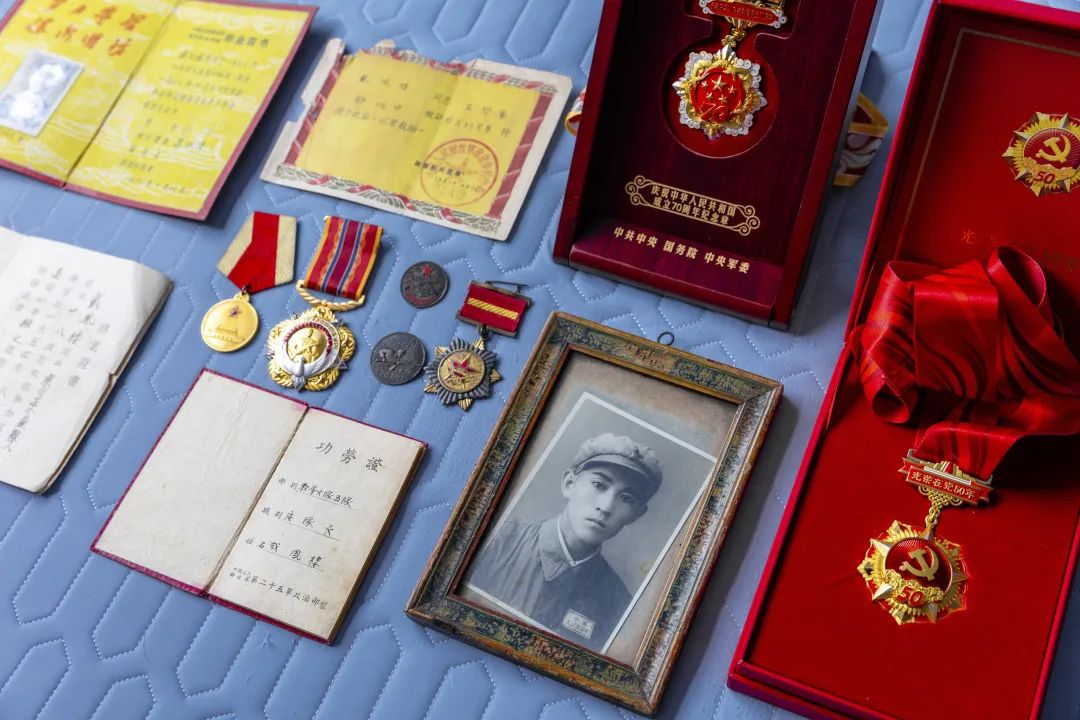 采訪過(guò)程中,已是96歲高齡的戴老對(duì)許多事情已經(jīng)記憶模糊,但對(duì)革命生涯的起點(diǎn)依然記憶猶新,“我是老百姓的孩子,年輕時(shí)當(dāng)了兵,那時(shí)候啥也不懂,沒(méi)有文化,多虧了黨把我培養(yǎng)了起來(lái),掃了盲、入了黨,我感恩共產(chǎn)黨,一輩子跟黨走”,戴老說(shuō)道。對(duì)于多年榮獲積累下來(lái)的勛章,戴老依然是如數(shù)家珍、視為至寶,“我們家是革命家庭,這些勛章不僅是我一個(gè)人的紀(jì)念,更是祖祖輩輩的紀(jì)念,是我們家的‘傳家寶’,要一代一代傳承下去”,戴老說(shuō)道。
