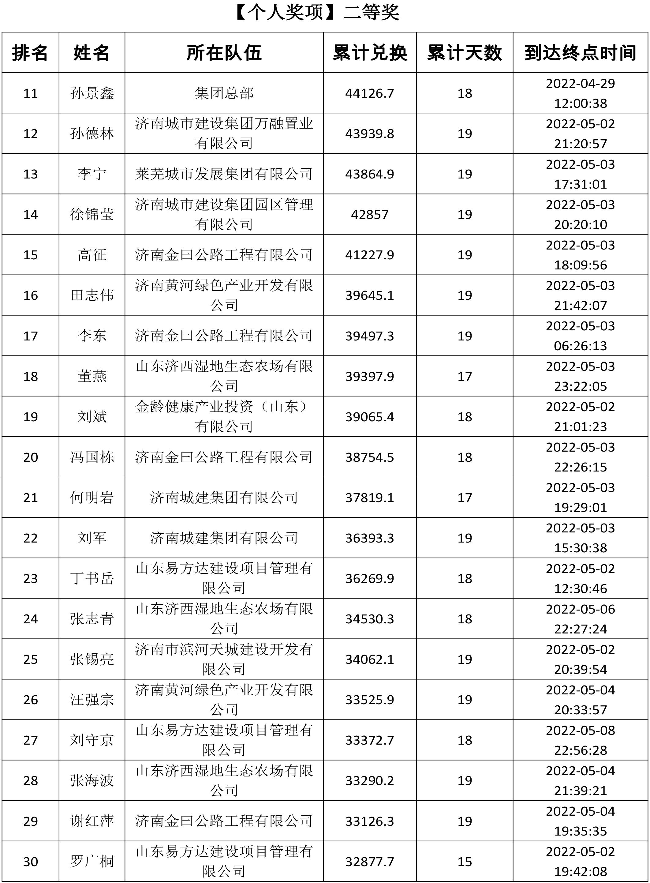 【建設青春】青春有夢 建設無疆| 濟南城市建設集團職工線上健步走活動成績公示