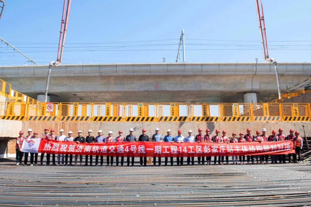 5月21日,隨著最后一倉頂板完成混凝土澆筑,由建設集團所屬濟南城建集團公司承建的濟南軌道交通4號線一期工程14工區(qū)彭家莊站車站主體結構封頂,為4號線同期展開施工的所有車站中實現(xiàn)封頂?shù)氖鬃囌尽?