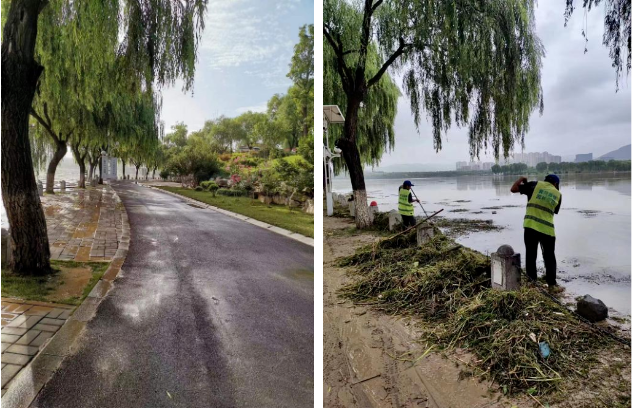 降雨過后,長清湖水面及沿岸道路出現(xiàn)不同程度的雜物和淤泥,為有效控制暴雨后對環(huán)境帶來的破壞和污染,景區(qū)組織保潔人員用高壓水車以及掃帚等工具著重道路清掃、清理淤泥,并將重點對湖面雜物進行清理清潔,確保在最短時間內(nèi)恢復(fù)景區(qū)環(huán)境。