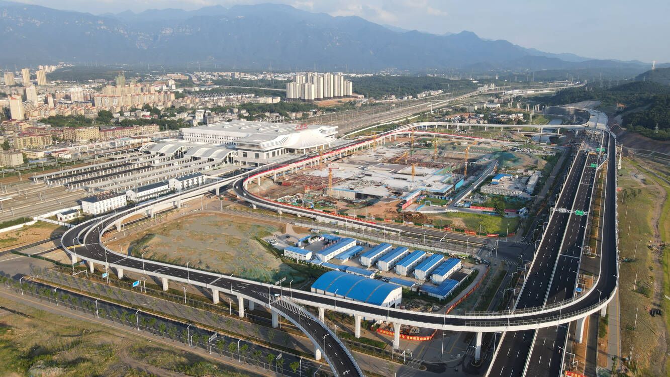 日前,隨著道路橋梁落客平臺(tái)段通車(chē),九江高鐵樞紐附屬工程完成全部剩余橋梁施工任務(wù)。目前,九江高鐵樞紐結(jié)構(gòu)主體中板完成占比78.6%,頂板完成占比64.3%,廣場(chǎng)回填、坡道、二次結(jié)構(gòu)等同步展開(kāi)施工。