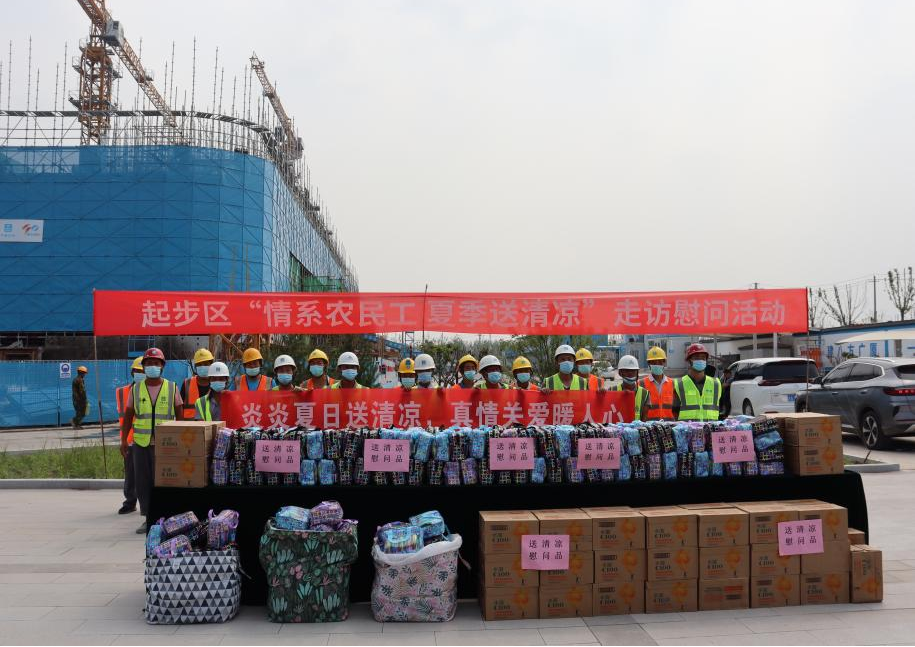 為進(jìn)一步延伸黨建工作服務(wù)范圍,提升黨員干部為民辦實(shí)事能力,切實(shí)做好一線建筑工人的防暑關(guān)愛工作,8月2日,起步區(qū)管委會(huì)主任助理兼綜合執(zhí)法部部長(zhǎng)孟克非,建設(shè)集團(tuán)黨委副書記鐘善良帶隊(duì)到山大二院起步區(qū)新院項(xiàng)目開展“夏季送清涼”走訪慰問活動(dòng)。