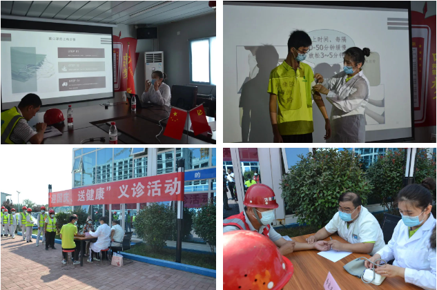 活動中,金齡護理院工作人員圍繞建筑工地常見問題,進行了《應急救護知識》專題授課。對疫情防控相關知識及防護要點做了講解,并就創(chuàng)傷包扎、心肺復蘇的應急處置通過“講解+實操”的方式進行培訓,進一步提高了施工現(xiàn)場管理人員和工人對急救知識的認識和自救、互救的應急處置能力;義診中,醫(yī)護人員為前來問診的工作人員開展健康咨詢,給予專業(yè)解答及治療建議,宣傳慢病預防、職業(yè)病預防的相關知識。