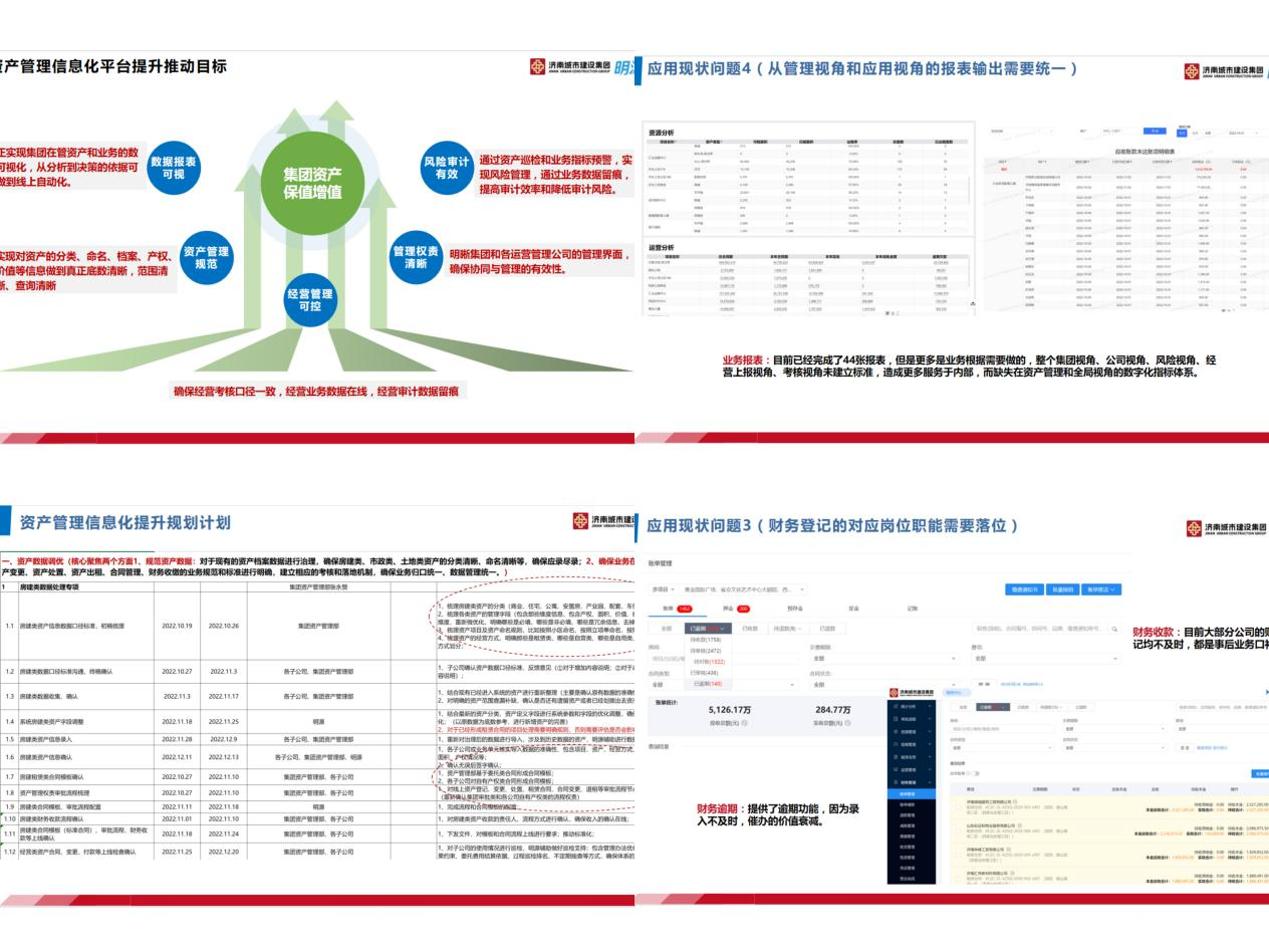 會(huì)議根據(jù)集團(tuán)資產(chǎn)管理實(shí)際業(yè)務(wù)及集團(tuán)資產(chǎn)管理需求,進(jìn)行了細(xì)致總結(jié)分析梳理。就目前系統(tǒng)存在數(shù)據(jù)可用性不完整、業(yè)務(wù)在線不及時(shí)、對(duì)數(shù)口徑不一致、管理范圍尚不明確等問(wèn)題制定了推進(jìn)目標(biāo)。會(huì)議要求,要進(jìn)一步規(guī)范資產(chǎn)管理、協(xié)調(diào)推進(jìn)明析管理權(quán)責(zé)、實(shí)現(xiàn)經(jīng)營(yíng)管理可控和數(shù)據(jù)報(bào)表可視、推進(jìn)開(kāi)展有效風(fēng)險(xiǎn)審計(jì);要持續(xù)調(diào)優(yōu)資產(chǎn)數(shù)據(jù)、進(jìn)一步完善報(bào)表體系、提升應(yīng)用場(chǎng)景、優(yōu)化使用功能。