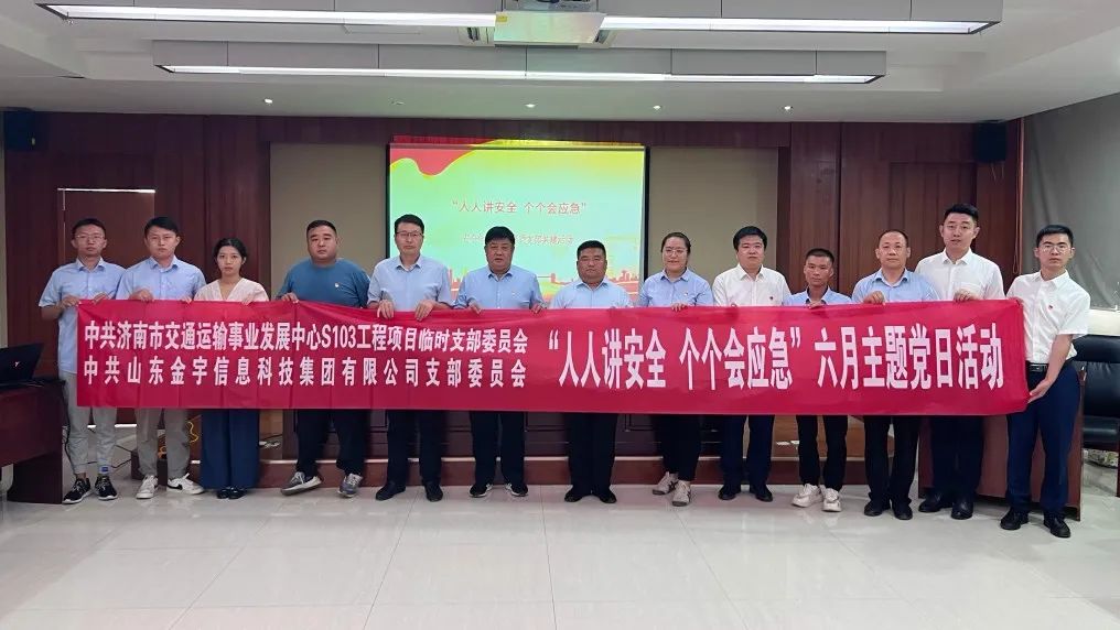 為了讓安全生產(chǎn)意識和理念深入人心,6月25日,山東金宇信息科技集團有限公司黨支部與濟南市交通運輸事業(yè)發(fā)展中心S103工程項目臨時黨支部開展共建,共同舉辦“人人講安全·個個會應急”安全知識競賽暨6月主題黨日活動,S103工程項目相關參建單位黨員、職工代表參加本次活動。