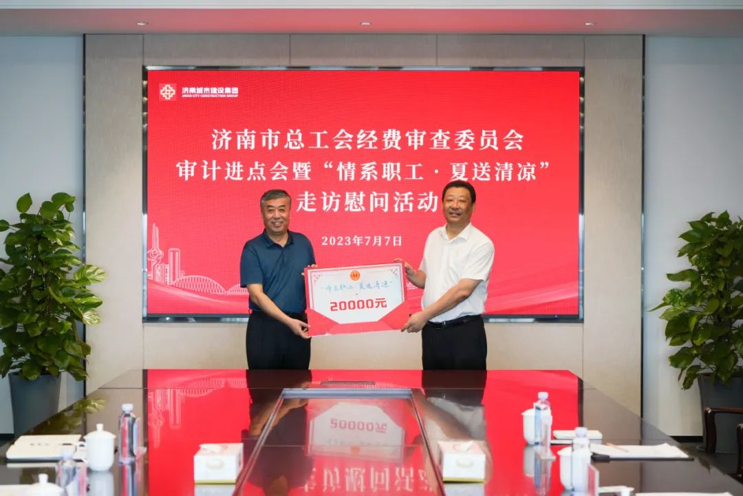 7月7日,市總工會黨組成員、經(jīng)費(fèi)審查委員會主任劉明忠?guī)ш牭浇ㄔO(shè)集團(tuán)開展?jié)鲜锌偣?jīng)費(fèi)審查委員會審計進(jìn)點(diǎn)會暨“情系職工·夏送清涼”走訪慰問活動,市總工會經(jīng)審辦主任宋強(qiáng),建設(shè)集團(tuán)黨委副書記鐘善良出席活動。
