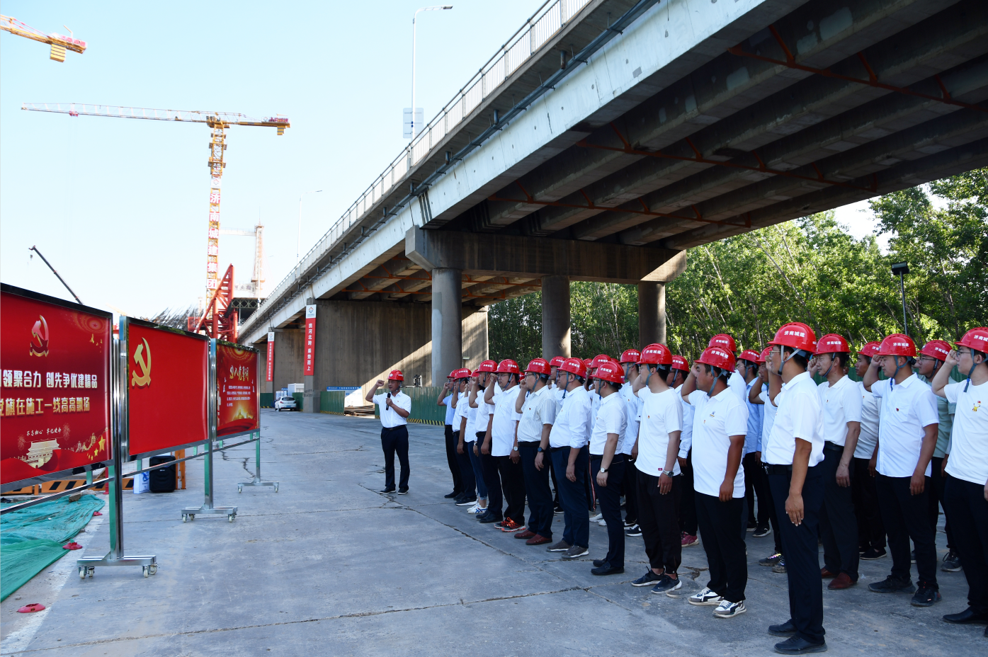 項目部充分發(fā)揮黨員先鋒模范帶頭作用,積極成立黨員突擊隊、青年突擊隊,劃分“黨員責任區(qū)”,設立“黨員先鋒崗”,靶向聚焦,先鋒突擊,以“大干快上”扛起政治責任,做到抓關(guān)鍵、補短板、強弱項,層層落實管控責任,合力推動工程建設提質(zhì)增效。