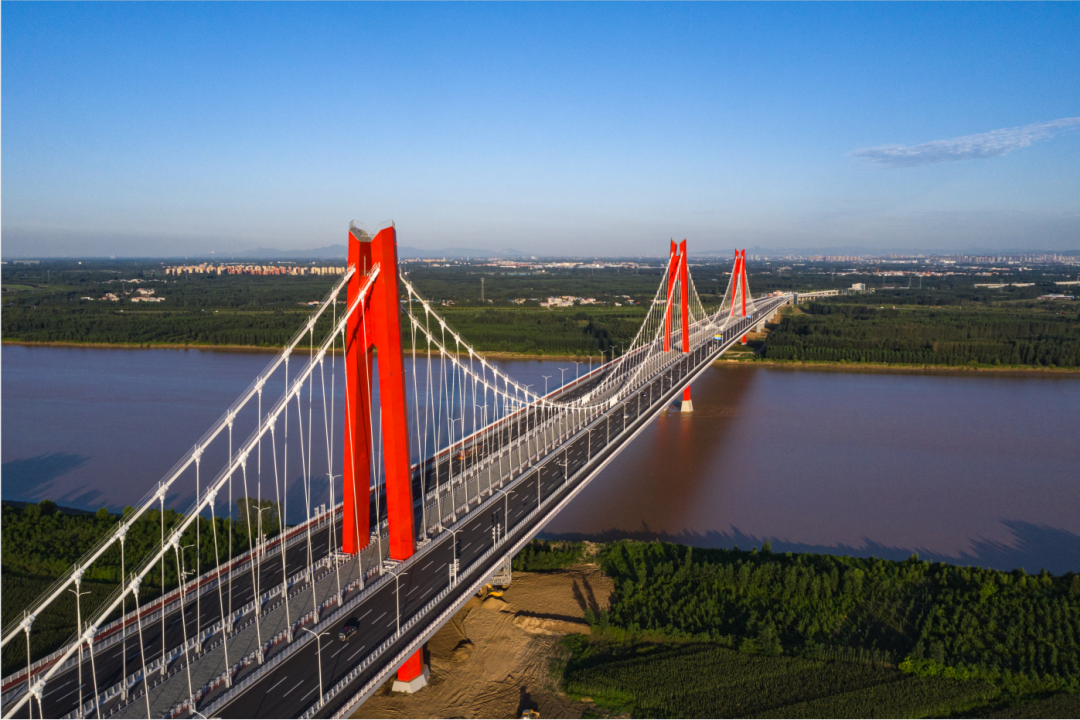 濟南黃河鳳凰大橋2022年1月18日投入通車運營。項目全長6683米,包括特大橋2座,其中跨黃河主橋和引橋長3788米,跨邯濟至膠濟鐵路聯(lián)絡線及南水北調(diào)橋梁1323米,跨黃河橋、跨邯濟至膠濟鐵路聯(lián)絡線及南水北調(diào)橋中部同步建設必要預留的軌道交通橋梁工程,項目總投資63.27億元。