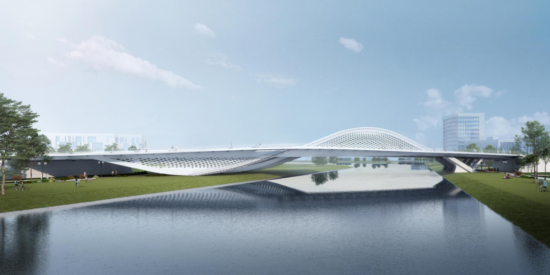橫二路大寺河橋由世界著名橋梁設計師Marc MIMRAM先生主設計,由建設集團所屬濟南城建集團公司承建。橋梁全長150.16m,采用鋼結(jié)構(gòu)梁拱組合體系一跨跨越大寺河,橋面總寬37m,道路寬度42m,雙向六車道,橋梁鋼結(jié)構(gòu)總鋼材用量約4197噸。