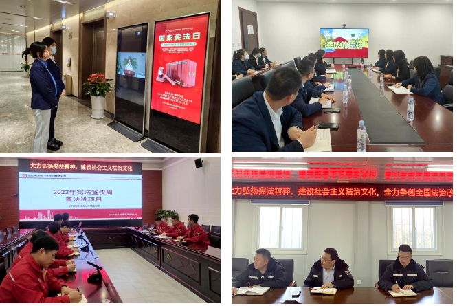 活動期間,集團在宣傳平臺開設“法治小課堂”欄目,推送《國家憲法日| 憲法和你的一生有什么關系?》《憲法宣傳周│“憲法知識知多少”專題測試》《憲法宣傳周│習近平法治思想應知應會(上)》《憲法宣傳周│習近平法治思想應知應會(下)》《憲法宣傳周│習近平法治思想專題測試》5篇普法推文,并通過集團電子屏投放憲法宣傳海報,營造濃厚活動氛圍。同時,集團積極組織各部室、子公司積極參與2023年全國 “憲法宣傳周”憲法知識網(wǎng)上競答活動,廣泛動員各子公司靈活采用線上、線下相結合的普法形式,大力加強習近平法治思想與憲法等內容的學習宣傳。