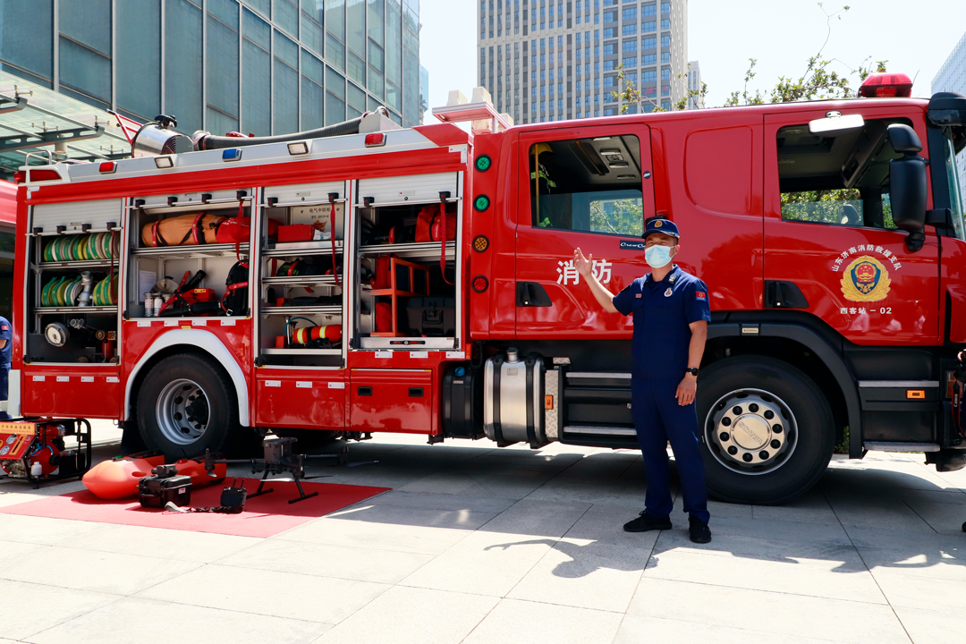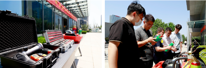 槐蔭區(qū)消防救援大隊(duì)對消防車上的各式裝備器材及操作方法進(jìn)行宣講,幫助現(xiàn)場人員認(rèn)識救援無人機(jī)、空氣呼吸器、方位指示燈等裝備器材。同時,在宣講員手把手的教學(xué)中,現(xiàn)場人員熟練掌握了“拔、握、瞄、掃”的滅火器使用方法并進(jìn)行了滅火實(shí)戰(zhàn)演練。實(shí)戰(zhàn)演練結(jié)束后,現(xiàn)場人員在安全生產(chǎn)承諾墻上簽下名字,承諾將以身作則,堅(jiān)守安全紅線,遵守安全生產(chǎn)法。